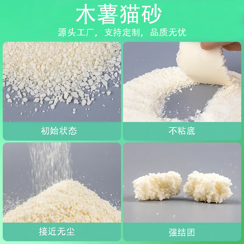 木薯猫砂是一种新型的环保猫砂。它的主要成分是木薯淀粉,这是一种天然的植物材料。